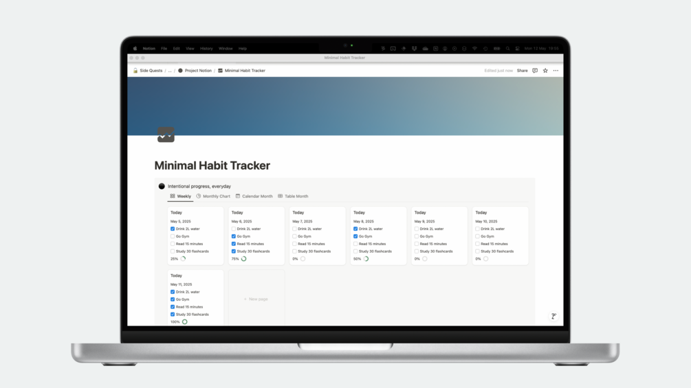This is a minimal but optimal Habit Tracker built in Notion for anyone looking to integrate habit formation into their daily life.